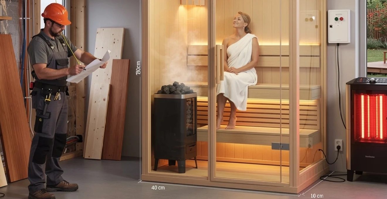 Une fois le type de sauna choisi, vient la phase de dimensionnement. Elle consiste à traduire vos besoins (nombre d’utilisateurs, confort souhaité, emplacement disponible) en surfaces, en volumes et en puissance de chauffage. Un sauna surdimensionné coûtera plus cher à l’achat et à l’usage, tandis qu’un modèle trop petit sera inconfortable et difficile à exploiter pleinement. L’objectif est donc de trouver le juste équilibre entre compacité, ergonomie et performance thermique.